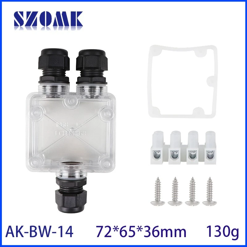 72 * 65 * 36 mm AK-BW-14 Câble coaxial Câble 1/2 Boîte de jonction électrique extérieure extérieure en plein air Boîte de connecteur de câble transparent pour piscine pour piscine