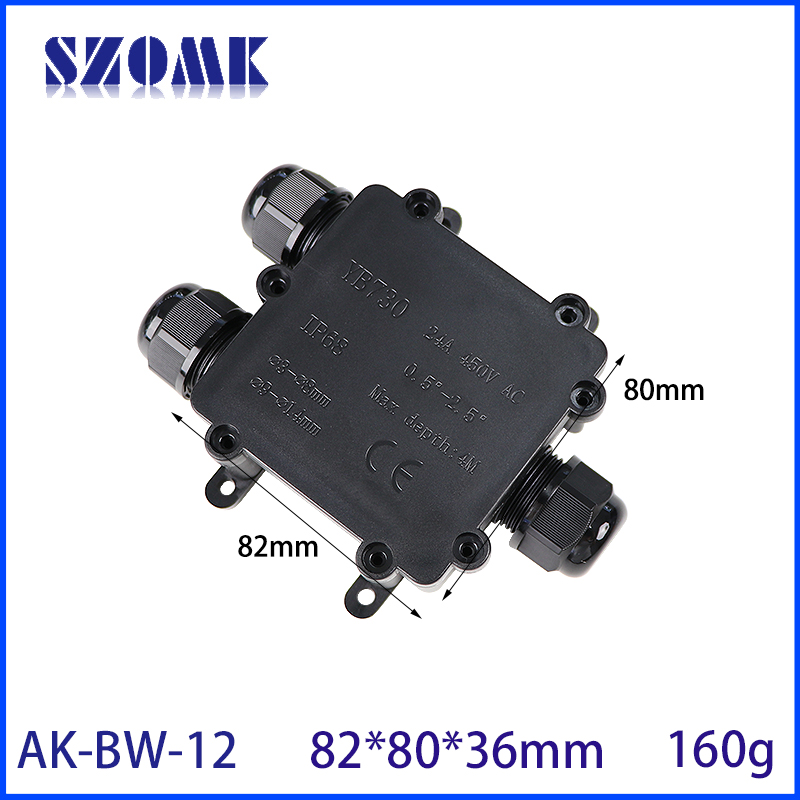 82*80*36MM AK-BW-12 Outdoor Cable Connector 3P 24A 450V Extension Cord Waterproof Wire Connector Ip68 for LED